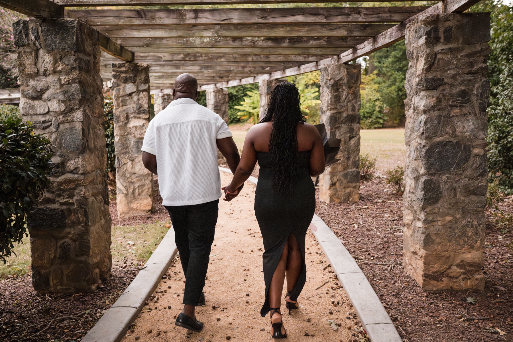 On the evening of the proposal, I brought my husband along as a decoy. We arrived early, I tucked my camera into a large purse, and we settled on a bench near the stone archways like any other couple enjoying the space. We even pretended to take selfies, fully committing to looking uninvolved.